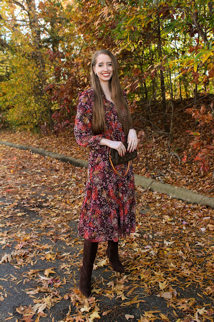 Hello friends! Today I'm sharing my Thanksgiving outfit - doesn't this dress just scream fall?! As soon as I saw it I knew I had to have it - the tones are my very favorite to wear, I love the burgundy and browns!