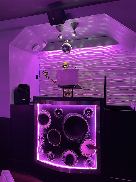 I got the "Elvira's Movie Macabre" cocktail which was right up my alley - gin, elderflower liqueur, creme de violette, and lemon juice.